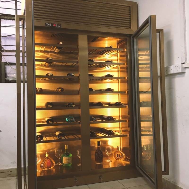 Lüks lüks tasarım evi özel özel Rose Gold paslanmaz çelik şarap dolabı ekran rafı