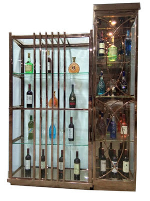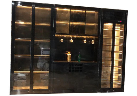 Lüks Yemek Oda Mobilyaları LED Ekran Rack ile Modern Paslanmaz Çelik Cam Kapı Şarap Dolabı