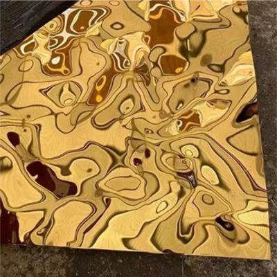 4X8feet 8K Mirror Ti-Gold Water Ripple Tavan Dekorasyonu için Paslanmaz Çelik Yaprak
