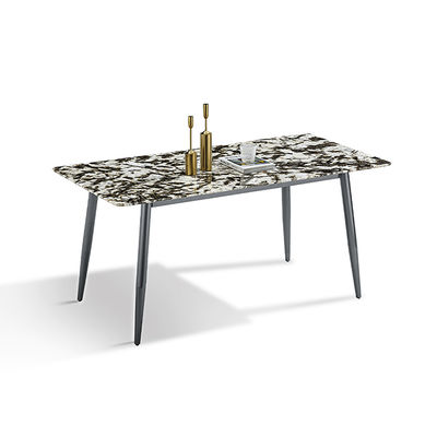 Modern Sintered Stone Table Üstü Gri Renk Karbon Çelik Tabanlı Yemek Masası