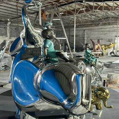 Luxury Hotel Lobby Custom Blue Silver 201 304 316L Stainless Steel Elephant Statue for Commercial Plaza Decoration